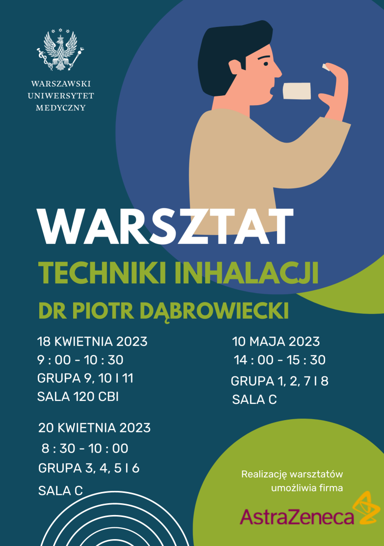 W uzupełnieniu do wykładu odbędą się warsztaty techniki inhalacji dla studentów IV roku Farmacji w trzech terminach: